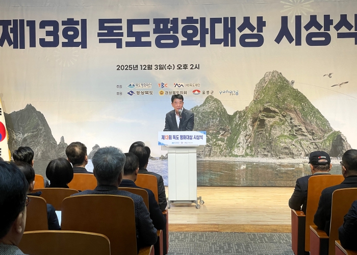 [뉴스노크=김인호 기자] 경상북도와 (재)독도평화재단은 3일 동부청사 강당에서 경상북도 환동해지역본부장, (재)독도평화재단 이병석 대표, 포항시장, TBC 대표이사, 수상자 등 100여 명이 참석한 가운데 제13회 독도평화대상 시상식을 개최했다.