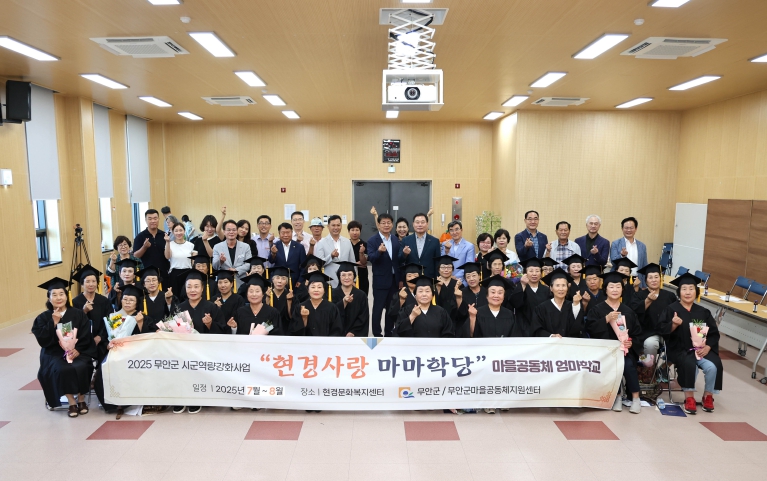 [뉴스노크=김인호 기자] 전남 무안군은 지난 26일 현경 문화복지센터에서 무안군 마을공동체 엄마학교 ‘현경사랑 마마학당’ 졸업식을 가졌다.