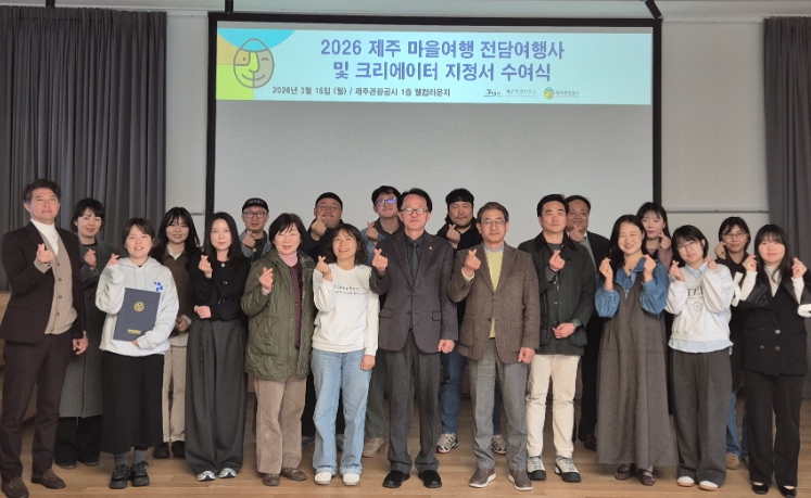 [뉴스노크=김인호 기자] 제주특별자치도와 제주관광공사(사장 고승철)은 3월 16일 월요일, 제주 웰컴센터에서 ‘2026 제주 마을 여행 전담 여행사 및 크리에이터’ 지정서 수여식을 개최하고 총 11개소를 공식 지정했다고 17일 밝혔다.