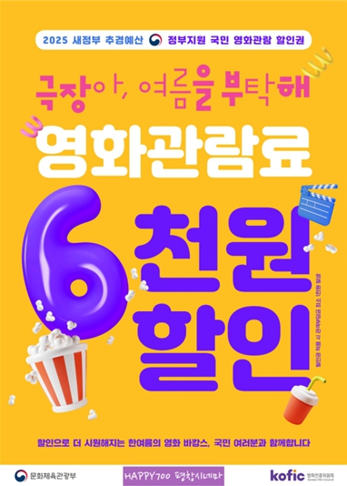 ▲ 정부지원 국민 영화관람 할인권 제공 최대 6,000원 할인 |