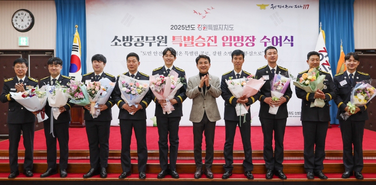 [뉴스노크=김인호 기자] 강원특별자치도는 12월 3일 도청 신관 대회의실에서 도민의 생명과 안전을 지키는 데 헌신한 우수 소방공무원 8명에 대해 특별승진 임용장 수여식을 개최했다고 밝혔다.