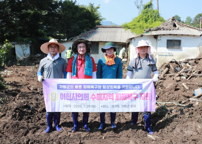 박명서 의장은 “갑작스러운 수해로 힘든 시간을 겪고 있는 이웃들이 하루빨리 평온한 일상으로 돌아갈 수 있길 바라는 마음으로 현장에 함께했다”며, “이천시의회를 비롯한 다양한 곳에서 따뜻한 발걸음이 이어지고 있는 만큼 모두의 정성과 협력이 빠른 복구와 주민들의 일상 회복에 큰 힘이 될 것이라 믿는다”고 전했다.