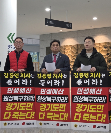 [뉴스노크=김인호 기자] 경기도의회 교육기획위원회 김호겸 의원(국민의힘, 수원5)은 2025년 12월 3일 백현종 경기도의회 국민의힘 대표의원을 중심으로 경기도의회 교육기획위원회 위원 및 교육행정위원회 위원들과 함께 김동연 지사가 팽개치고 있는 경기도 민생예산 복구를 촉구했다.