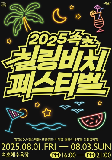 [뉴스노크=김인호 기자] 속초시는 오는 8월 1일부터 3일까지 속초해수욕장 야외무대 일원에서 한여름의 더위를 식혀줄 특별한 해변 축제 ‘2025 속초 칠링비치 페스티벌’을 개최한다. 이번 축제는 무더운 여름을 시원하게 즐기며, 속초에서만 누릴 수 있는 감각적인 여름 경험을 제공하는 것을 목표로 한다.