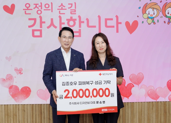 [뉴스노크=김인호 기자] 충남 서산시는 29일 간판 및 광고물 제조업체 디자인비(Design B)가 집중호우 피해 주민을 위해 성금 2백만 원을 전달했다고 밝혔다.