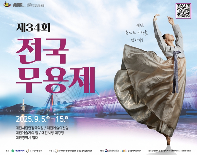 대전광역시와 (사)대한무용협회가 주최하고, (사)대한무용협회와 제34회 전국무용제 집행위원회가 주관하는 이번 무용제는 15일까지 11일간 대전예술의전당, 대전시립연정국악원, 대전예술가의 집 등 대전 전역에서 열린다.