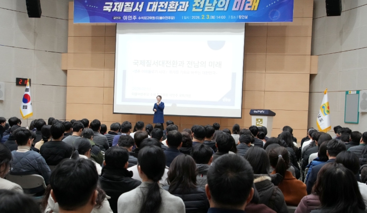 [뉴스노크=김인호 기자] 전라남도는 3일 도청 왕인실에서 이언주 더불어민주당 수석최고위원(미래경제성장전략위원회 위원장·AI강국위원회 수석부위원장)을 초청해 ‘국제질서 대전환과 전남의 미래’를 주제로 제301회 전남포럼을 개최했다.