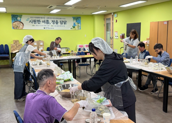 이번 행사는 여름철 무더위로 지친 고립 위기가구의 기력 회복과 이웃 간 유대감 형성을 위해 마련했다. 행사에 참석한 20명의 지역주민들은 초계국수와 수제 청귤청을 만들었다. 청귤청 상자에는 청귤청과 더불어 감자탕과 단백질 음료도 같이 담아 건강 꾸러미(키트)로 완성했다.