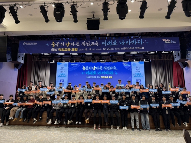 [뉴스노크=김인호 기자] 충남교육청은 12월 19일부터 20일까지 예산 스플라스 리솜에서 학생 60명, 교사 380명이 참여한 가운데‘2025학년도 충남 직업교육 포럼’을 개최한다.