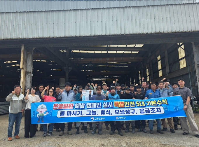 [뉴스노크=김인호 기자] 전남 무안군은 지난 22일 삼향농공단지를 방문해 여름철 산업현장에서 발생할 수 있는 중대재해 예방을 위한 ‘폭염대응 온열질환 예방 캠페인’을 실시했다.