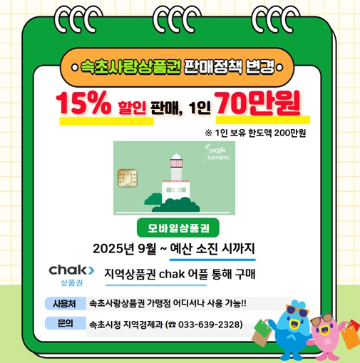 ▲ 속초사랑상품권, 9월부터 할인율 15%로 상향 |