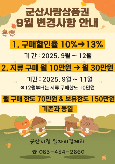 ▲ 군산사랑상품권 9월부터 12월까지 할인율 13%로 상향 |