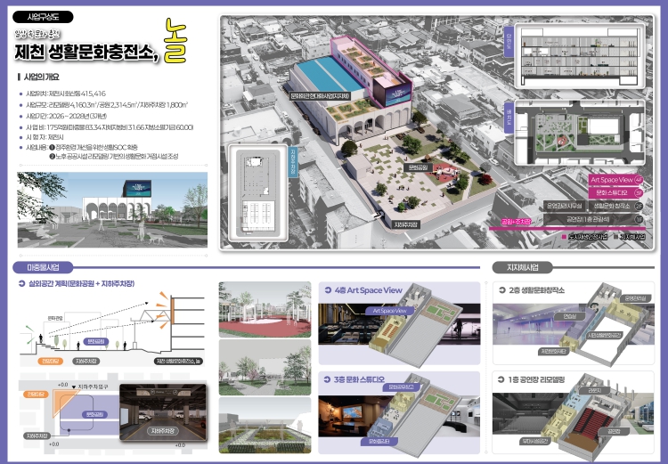 • 기존 문화시설을 리모델링해 공연장·시민문화지원공간·음악감상실 등을 갖춘 ‘생활문화충전소’를 조성하고, 문화광장과 지하주차장도 함께 조성하여 지역의 문화 수요에 적극 대응한다.