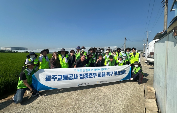 [뉴스노크=김인호 기자] 광주교통공사는 25일 광주시 광산구 용곡동 일대의 집중 호우 피해 현장을 방문해 수해 복구를 돕기 위한 봉사 활동을 펼쳤다.