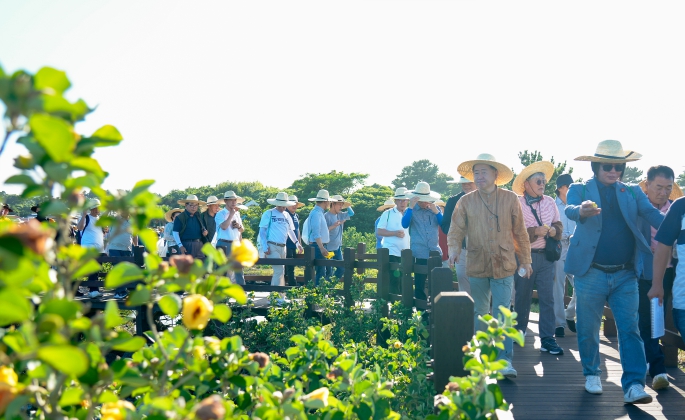 참가자들은 오조리사무소에서 출발해 족지물과 식산봉 둘레길을 거쳐 출발점으로 돌아오는 약 2km 구간의 걷기코스를 걸었으며, 특히 데크길에서는 황근 씨앗을 직접 뿌려 황근숲 확산에 동참했다.