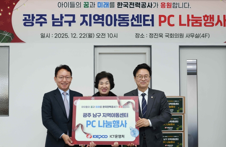 [뉴스노크=김인호 기자] 한국전력이 12월 22일 광주 남구 지역아동센터를 대상으로 ‘PC 나눔행사’를 개최했다. 이번 행사는 지역아동센터의 디지털 교육 환경을 개선하고 자원의 효율적 활용을 통한 나눔 문화를 확산하기 위해 마련됐다.