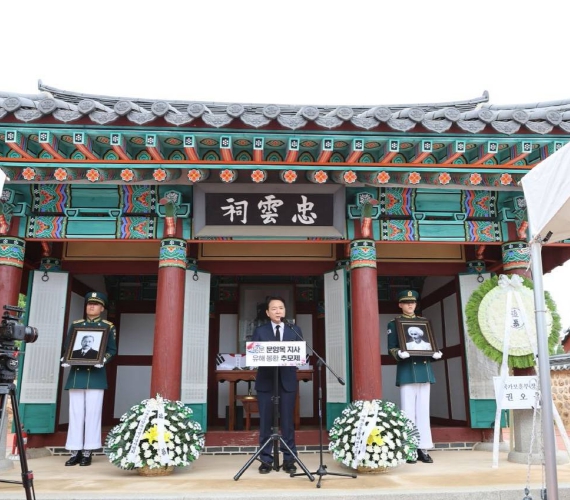 이어 성 의원은 “이제 우리 태안군민들의 따뜻한 영접을 받으시고 당신의 조국, 어머니의 품에서 영면하소서”라며, “고향 태안을 축복해 주시고 우리 민족의 앞날을 높은 기개와 용기로 지켜주소서”라며 조사를 끝맺었다.