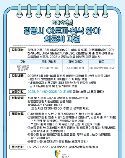 ▲ 2025년 광명시 아토피·천식 환아 의료비 지원 안내문 |