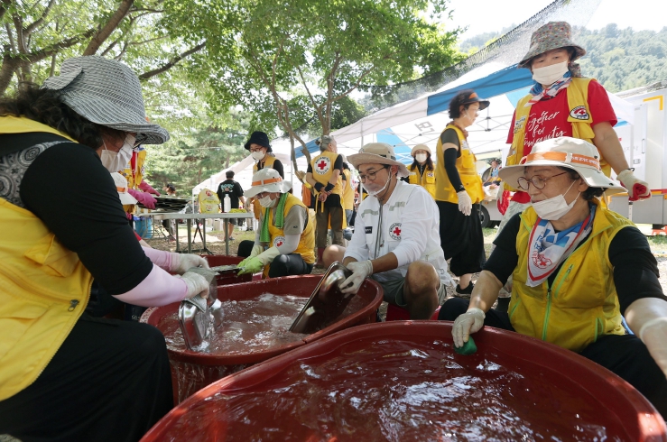 적십자 가평군지구협의회는 매일 50여 명의 회원이 참여해 집중호우로 큰 피해를 입은 가평지역 복구 현장에서 민간 자원봉사자들과 군 장병들에게 식사를 제공하고 있다. 급식 봉사활동은 상면 덕현리 산장관광지에 마련된 급식소에서 이달 31일까지 실시할 예정이다.