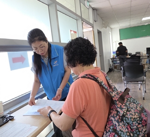 ▲ 인천 서구 검암경서동 행정복지센터에서 신청서 작성 안내를 돕는 통장 |