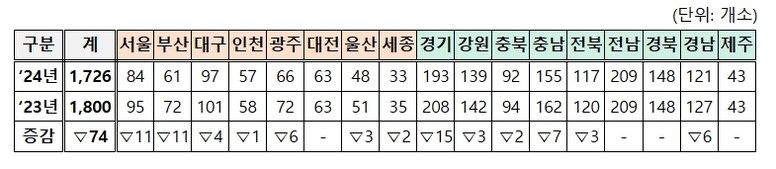 실태조사 결과 2024년 말 기준, 전국 마을기업 수는 1,726개로 전년(1,800개) 대비 4.1% 감소했고, 총 매출은 3,070억 원으로 전년(3,090억 원) 대비 0.6% 감소해, 법적 근거 미비와 지난 2년간 재정지원 축소로 인해 마을기업 규모와 활동이 다소 위축된 것으로 나타났다.