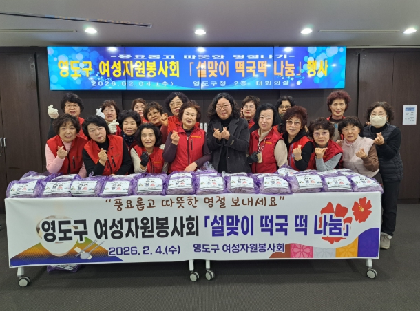 [뉴스노크=김인호 기자] 영도구 여성자원봉사회(회장 이춘희)는 지난 2월 4일, 민족의 명절 설을 맞아 관내 저소득 홀로 어르신 70여 명을 대상으로 떡국떡 나눔 행사를 가졌다.