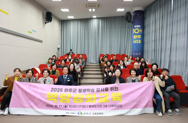 [뉴스노크=김인호 기자] 완주군이 17일 중앙도서관 다목적강당에서 평생교육 강사 80여 명을 대상으로 ‘평생교육 강사 역량강화 교육’을 실시했다.
