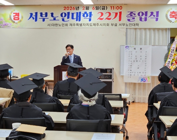 [뉴스노크=김인호 기자] 현원돈 제주시 부시장은 2월 6일 제주시 서부노인복지회관에서 열린 제22기 서부노인대학 졸업식에 참석해 어르신들께 존경의 마음을 전했다.