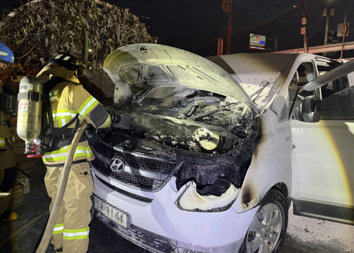 소방서에 따르면 이날 오전 6시 15분께 근무자들을 태우기 위해 잠시 정차 중이던 신고자는 시동이 갑자기 꺼지며 타는 냄새가 나는 것을 확인했다.
