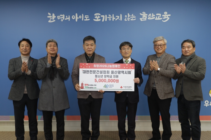 천창수 교육감은 “해마다 따뜻한 나눔을 실천해 주신 대한전문건설협회 울산광역시회에 감사드린다”라며 “학생들이 어려운 여건 속에서도 학업에 전념하며 자신의 꿈을 키워가는 데 큰 힘이 될 것”이라고 말했다.