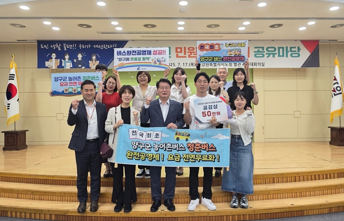 [뉴스노크=김인호 기자] 양구군이 지난 17일 도청 별관 회의실에서 열린 ‘2025년 강원특별자치도 민원 우수사례 공유마당’에서 '남녀노소 누구나 공짜, 양구군 농어촌 버스 완전 공영제 및 요금 전면 무료화' 시행 사례로 공감상을 수상했다.
