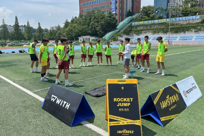김천상무프로축구단(대표이사 이재하)이 7월 3일 경북보건대학교 운동장에서 ‘프로젝트위드(이하 위드)’와 선수 체력측정 및 분석 서비스인 ‘아이엠스트롱’을 진행했다. 이번 아이엠스트롱에는 김천상무 U18과 U15 선수단이 참여했다.