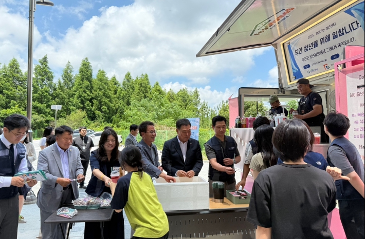 첫 번째 방문지인 무안고등학교는 AI 정보교육 중심의 커리큘럼과 진로·진학 프로그램을 운영하는 자율형 공립 기숙학교로 청년플랫폼은 이날 행사에서 학생들에게 맛있는 간식과 함께 청년센터 소개, 무안군 청년정책 안내 등을 진행하며 큰 호응을 얻었다.