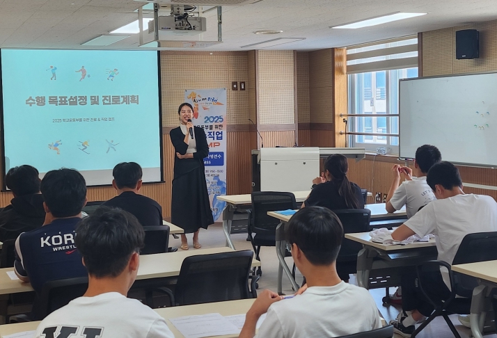 ▲ 7월 22일 전라남도교육청 체육교육센터에서 ‘2025. 학교운동부를 위한 진로직업캠프’가 진행되고 있다. |