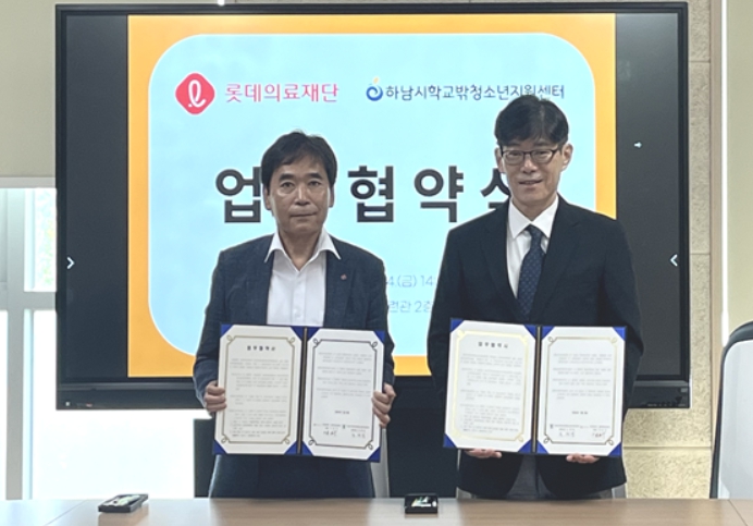 ▲ 하남시학교밖청소년지원센터, 의료법인 롯데의료재단 ∙ 브라운커피와 학교 밖 청소년 직장체험을 위한 업무협약 체결 |