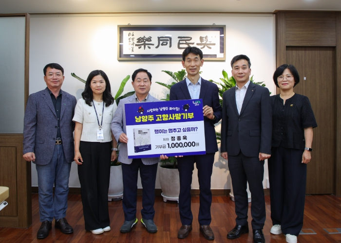 [뉴스노크=김인호 기자] 남양주시는 22일 도서 ‘팽이는 멈추고 싶을까’의 저자 정종욱 작가가 고향사랑기부금 100만 원을 시에 전달했다고 밝혔다.