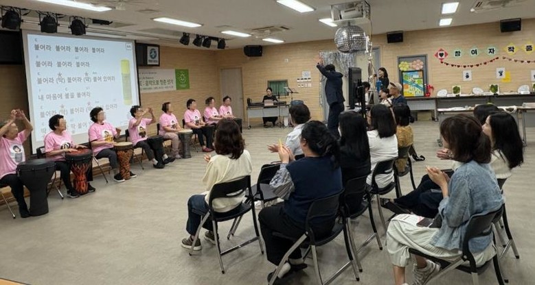 이 프로그램은 관내 60세 이상 주민을 대상으로 ▲노래부르기 ▲리듬악기 연주하기 ▲율동하기 등 음악을 활용한 다양한 콘텐츠로 구성돼, 치매예방을 위한 인지 자극, 정서적 안정, 사회 교류 등을 촉진하는 데 중점을 두었다.
