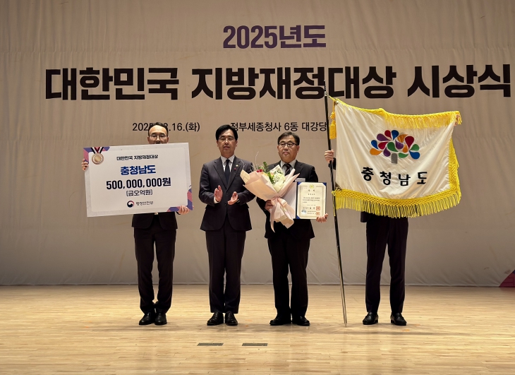 [뉴스노크=김인호 기자] 충남도는 16일 정부세종청사 대강당에서 열린 ‘2025년 대한민국 지방재정대상 시상식’에서 국무총리상을 받아 재정 인센티브 5억 원을 확보했다.