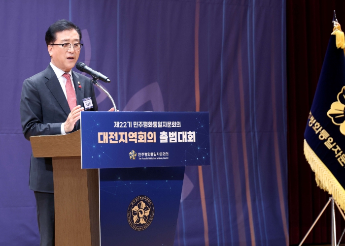 [뉴스노크=김인호 기자] 대전시의회 조원휘 의장은 21일 대전시청에서 개최된 제22기 민주평화통일자문회의 대전지역회의 출범식에 참석해 축하의 인사를 전하며, 대한민국의 온전한 평화와 번영을 위해 힘써주실 것을 당부했다.