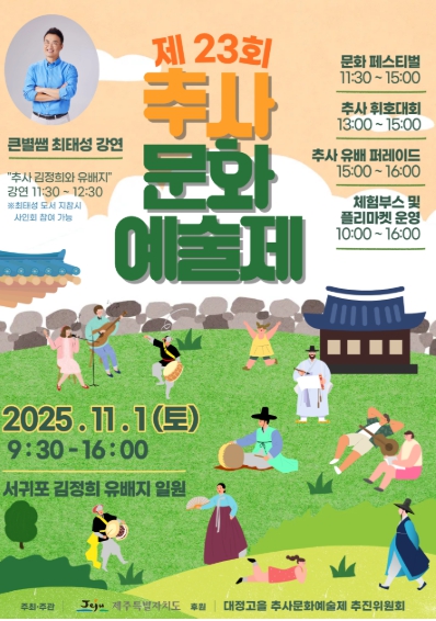 [뉴스노크=김인호 기자] 제주특별자치도 세계유산본부는 11월 1일 서귀포 김정희 유배지 일원에서 ‘제23회 추사문화예술제’를 개최한다.