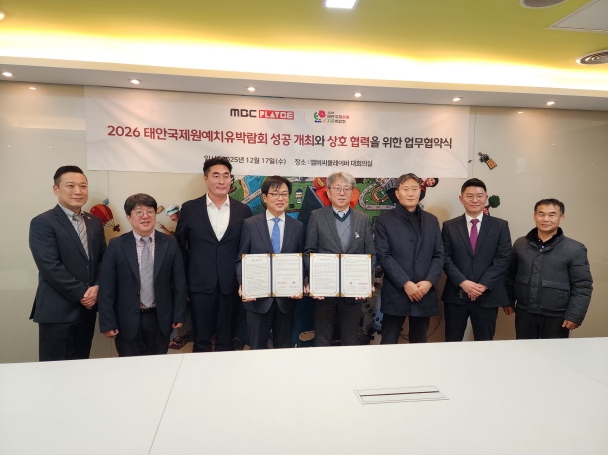 [뉴스노크=김인호 기자] 태안국제원예치유박람회 조직위원회는 12월 17일 서울 키자니아 본사에서 글로벌 어린이 직업체험 브랜드 키자니아 운영사인 ㈜엠비씨플레이비와 업무협약을 체결했다고 밝혔다. 이번 협약은 '2026 태안국제원예치유박람회' 개최를 앞두고 어린이와 가족 단위 관람객 유입을 확대하고, 체험 중심의 박람회 콘텐츠를 강화하기 위해 추진됐다.