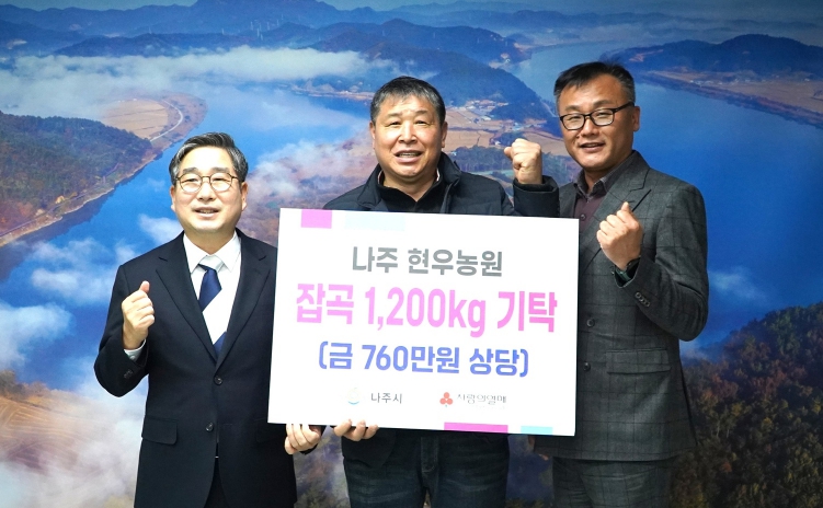 [뉴스노크=김인호 기자] 전남 나주시는 현우농원이 16일 관내 취약계층 지원을 위해 백미(10kg)와 찰수수(1kg), 찰기장(1kg) 각 100포씩(760만 원 상당)을 기탁했다고 밝혔다.