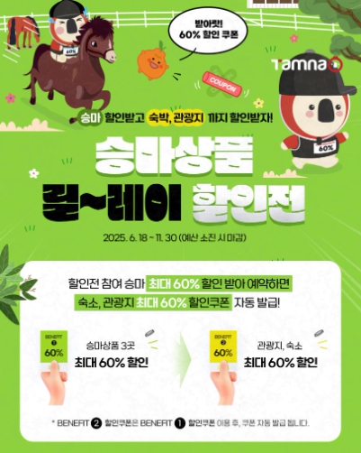 참여 방법은 제주관광협회 제주여행 공공 플랫폼 ‘탐나오’(tamnao.com)를 통해 상품을 구매하면 된다. 승마 상품 구매 시 제휴된 관광상품과 숙박상품(1박)에 사용할 수 있는 할인 쿠폰이 함께 제공되며 ‘농촌관광승마활성화 사업’ 표시가 있는 상품에 한해 쿠폰이 발급되어 예산 범위 내에서 지원할 계획으로 쿠폰은 2025년 12월 31일까지 사용 가능하다.