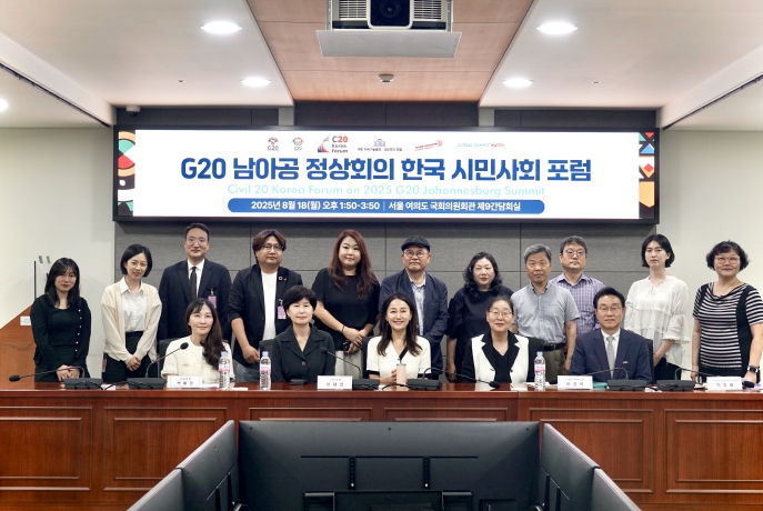이번 포럼은 오는 11월 남아프리카공화국 요하네스버그에서 열리는 G20 정상회의를 앞두고, 한국 정부와 시민사회의 준비 현황을 점검하고 정책 제안을 논의하기 위해 마련됐다. 학계, 정부, 시민사회 등 다양한 분야 인사들이 참여해 논의의 폭을 넓혔다.