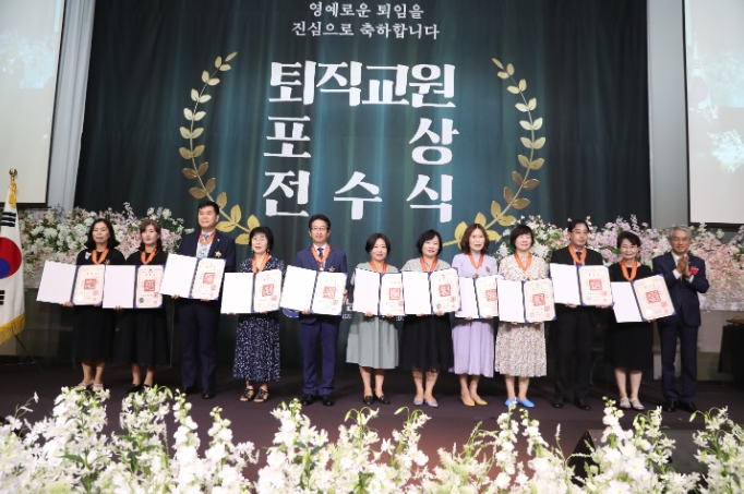 이번 전수식은 2025년 2월 명예퇴직자와 8월말 정년퇴직자를 포함해 총 400명의 교원이 대상이며, 2025년 정부포상 지침에 따라 투명하고 건전한 포상 문화 정착을 위해 교직 생활 동안 헌신과 노고를 아끼지 않은 교원들에게 감사와 존경의 마음을 전하기 위해 마련됐다.