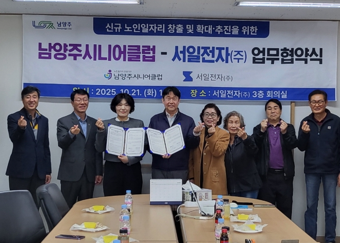 주요 협약 내용은 △공동작업장 운영 협력 △근로환경 조성 △참여 어르신 배치 등이다. 서일전자(주)는 작업장 공간과 근무환경을 제공하며, 남양주시니어클럽은 참여자 선발 및 배치를 담당한다. 이를 통해 전자부품 조립 분야에서 40명의 노인 일자리를 새롭게 창출할 계획이다.