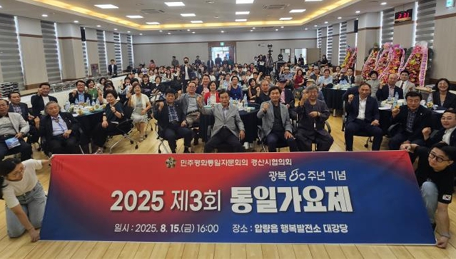 [뉴스노크=김인호 기자] 광복 80주년을 맞아 남과 북이 음악으로 하나 되는 무대가 경산에서 열렸다. 민주평화통일자문회의 경산시협의회(협의회장 김형수)는 15일 경산시 압량읍 행복발전소에서 시민과 북한이탈주민 등 130여 명이 함께한 가운데‘남북밴드 리멤버 평화음악회’와‘제3회 통일가요제’를 성황리에 개최했다.