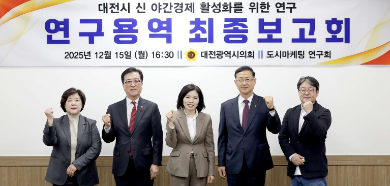 [뉴스노크=김인호 기자] 대전시의회 ‘도시마케팅 연구회(회장 이금선 의원)’는 15일 시의회 공감실에서 ‘대전시 신 야간경제 활성화를 위한 연구’ 용역 최종 보고회를 개최했다.