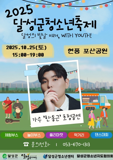 ‘2025 달성군 청소년 축제’에 대한 자세한 내용은 달성군청소년센터 홈페이지를 통해 확인할 수 있다.