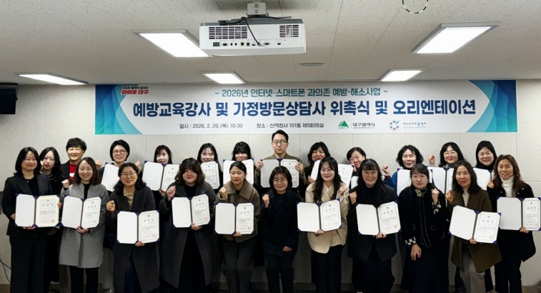 [뉴스노크=김인호 기자] 대구광역시는 2월 26일 시민들의 디지털 과의존을 예방하고 건전한 정보문화 확산을 이끌 ‘2026년 인터넷·스마트폰 과의존 예방교육강사 및 가정방문상담사 위촉식’을 개최했다.